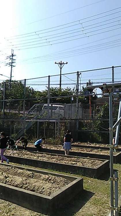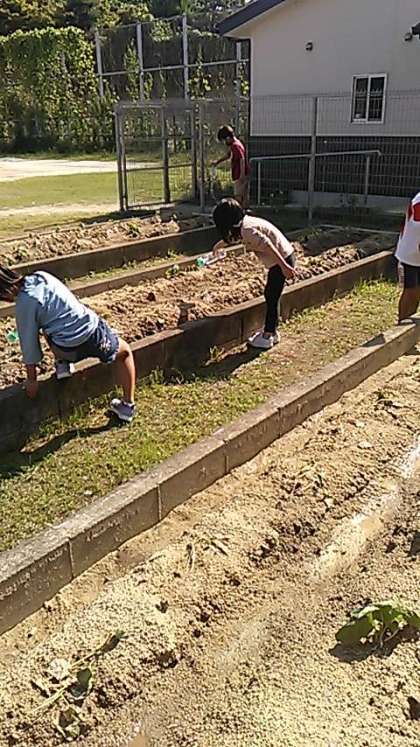 先週,地域の方々にお世話になってサツマイモの苗を植えました。