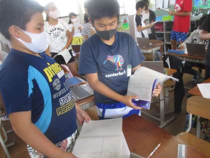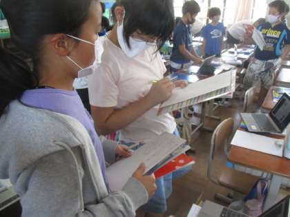 話し言葉と書き言葉の特徴を比較して考えていました。また,友達との手紙やメッセージのやりとりは,書き言葉でもあり,話し言葉で書いてしまうことがあるので気をつけなければならないことを話し合いました。