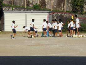 運動会の練習や教科の学習を終えた放課後、部活動もしっかり頑張って取り組んでいます。今日はサッカー、バスケットボールの部活動がありました。実習の先生も指導に入ってもらい、ふだんよりさらに活気ある練習風景です。