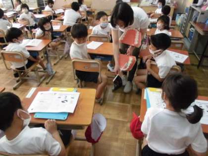 「6月4日は何の日?」「む(6)し(4)ば予防デー!」からはじまった歯みがきの学習。歯ブラシの正しい持ち方やみがき方などを詳しく学ぶことができました。今日からまた歯みがきをしっかり頑張ってほしいなと思います。