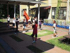 休み時間に応援団の練習が始まり、太鼓や笛の音と「フレーフレー、白組!」「頑張れ頑張れ紅組!」と応援の声が響いてきます。いよいよ運動会が近づいてきました。