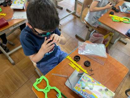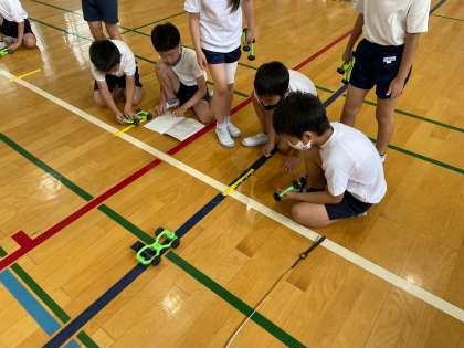 今日は車を作って,体育館で走らせました。