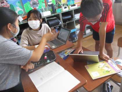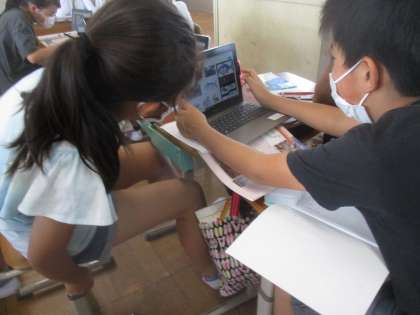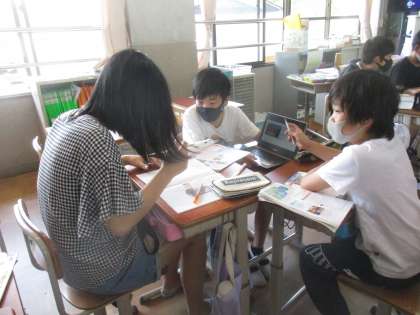 震災後の課題や取り組みについて学習したことから,気仙沼市で行われている取り組みや観光名所などのポスターを班で協力して作っています。もっと多くの人に好さを知ってもらおうとそれぞれの班が工夫を凝らしています