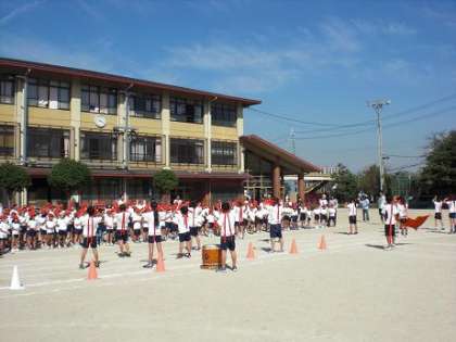 紅組・白組の応援練習が始まりました。「フレーフレー赤組・・・」「白組の優勝を願って・・・」と赤白組団長のリードで、全学年が声を合わせて練習しました。エール交換も初めてと思えない揃い方で、声もよく出ています。当日がとても楽しみです。