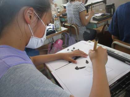 三つの部分の組み立て方に気をつけて書いていました。それぞれの部分の大きさや形に注意して集中して取り組んでいました。
