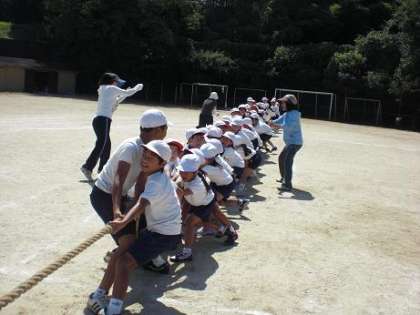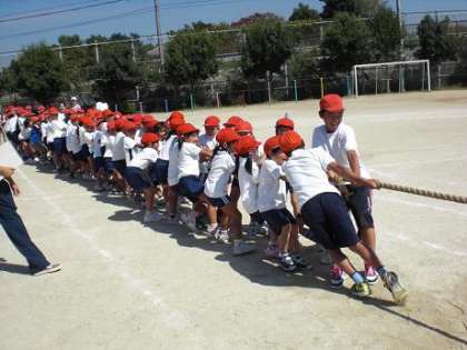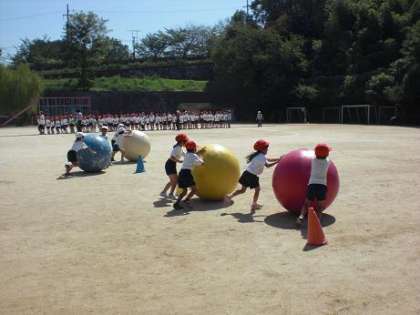 選択種目の練習が分かれて行われました。大玉を転がすゲームリレー、綱引き、選抜リレーです。第2グランドで練習した選抜リレーの画像はアップできず申し訳ありません。赤と白、どちらが速いか当日にご期待ください。大玉リレーも綱引きも、初めての1年生。少し戸惑いながらもいっしょうけんめい取り組んでいました。