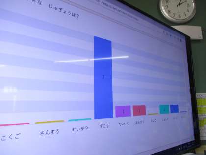 毎日,日直さんが好きな○○についてスピーチをしています。好きなTV番組,好きな本,好きなお菓子など理由を説明しながら発表しています。では,好きな教科をなんだろうということで,ロイロノートでアンケートを取りました。結果は断トツで「図工」でした。子どもたちは,絵を描いたり,物を作ったりすることが大好きなんだなと改めて感じました。