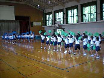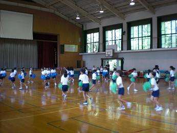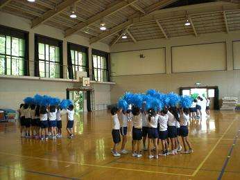 2年生は運動会の前、11日に体育館で開かれる「シルバーのつどい」に参加し、ダンスを観ていただきます。今日は本番通りのリハーサルで、ぽんぽんを手に持って踊りました。稲妻イレブンなどのアップテンポの曲ににのって、いっしょうけんめい踊りますので、どうぞご期待ください!