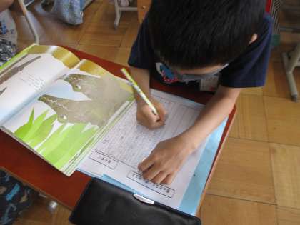 スイミーの学習が終わり,並行読書で読んでいたレオ・レオニさんの作品の中から,自分のお気に入りの本を選んで紹介文を書いています。