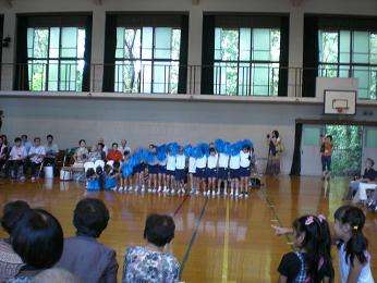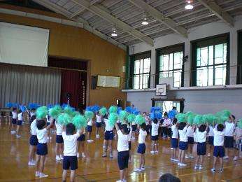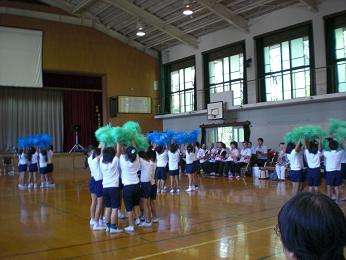 ポンポンを両手にリズムに乗ったダンスに、会場の皆さんの手拍子が重なりました。曲が変わるごとに隊形を上手に変えて、最後はウェーブで締めくくり大きな拍手をいただきました。運動会でも運動場でさらにダイナミックに踊ります。シルバーのつどいにこられた皆様、17日の運動会にもどうぞお越しください。ありがとうございました。