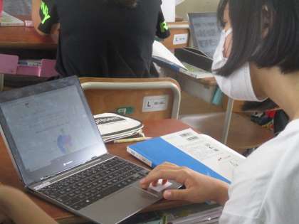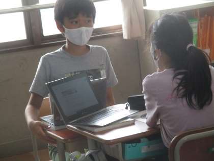 学校の資源や環境を大切にするために,自分たちができることはないかグループで話し合っていました。実際にインタビューをしたり校内をまわったりして現状について確認していました。