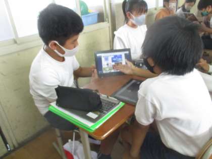 日本の行事について外国の旅行客に紹介していました。日本には伝統行事や地方の行事が多くあり,その中から伝えたいものを選んで,工夫して伝えることができました。全員が活発に活動していました!!