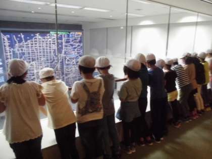 110番通報を通信指令センターで受けている様子も見ることができ,子どもたちは驚きの表情を浮かべていました。
