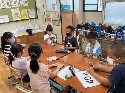 各グループで自己紹介をした後,トランプや百人一首などで遊びました。