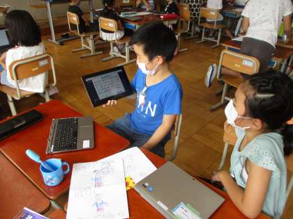 「あったらいいな,こんなもの」をグループで発表しました。今回は,初めてロイロノートでスライドを作って,相手に見せながら発表しました。