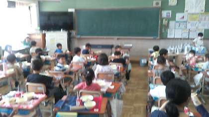 1年生もだんだんと給食時間内に食べることに慣れてきました。