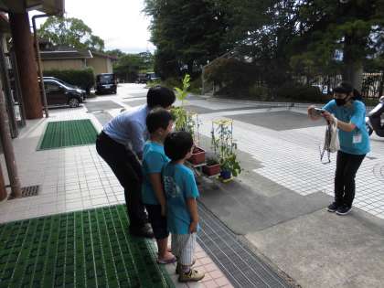 来年度,深草幼稚園から入学するお友達が花の苗をプレゼントしに来てくれました。