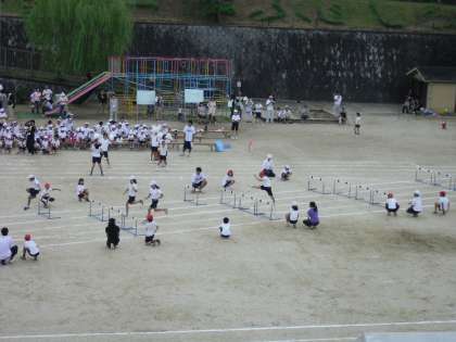 6年・たけのこ 50メートルハードル走の様子です。