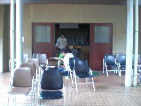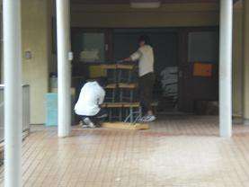 代休日の翌日ですが、台風で子どもたちが登校していません。そんな中、土曜日の運動会当日に雨でぬれて片付けきれていなかった体育館の長イス等の後片づけをしています。教育実習生が率先して取り組んでくれています。何とすでに先週末に実習を終えた大学院生も、ボランティアとして朝から来てくれました。若い力に感謝です!