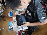 水揚げされた魚が私たちの食卓に届くまでをタブレットでまとめました。漁港の市場でせりをしている様子や,魚が水揚げされる様子を興味深そうに調べていました。