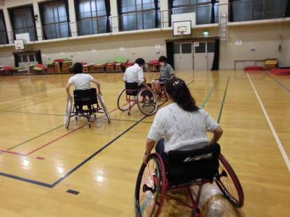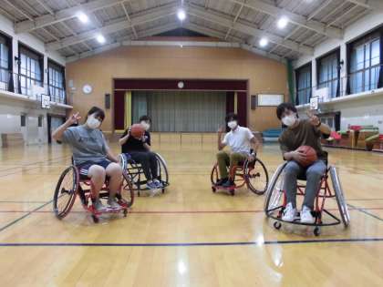 東京2020パラリンピックでの選手の勇姿を見て,パラスポーツの魅力に気が付きました。早速,呉竹総合支援学校からスポーツ型の車いすをお借りして,まずは教職員でパラスポーツ大会を開催。とにかく乗って体育館の中をグルグル回って操作を確認。車いすバスケ,バトミントンにチャレンジしました。子ども達とも一緒に体験できたらな…と思っています。