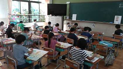 みんなお話を聞いて,それぞれ想像を膨らませて描いています。