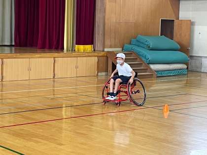 ハンドリム操作するのは思ったよりも難しく,特に曲がる時に苦労している子もいましたが,上手に試乗することができていました。