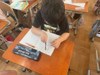 手首をまわして円をかくのが難しいと思った子もいましたが,みんな器用に円をかくことができていました。