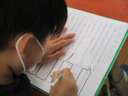5時間目に校内研究がありました。たくさんの先生方が見られている中でしたが,自分の考えをワークシートに書き,頑張って発表することができました。がまくんが初めてお手紙をもらった場面で,気持ちがすごく動いたということを感じていて,その理由も考えられていました。明日から,音読劇に向けて,練習していきます。