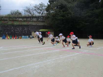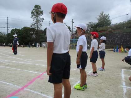 最初の種目は50メートル走です。ゴールを目指して一生懸命走りました。