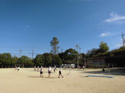 最初は…低い高さでリズムよく助走して,踏み切る練習です。