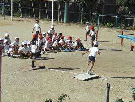 3年生は体育で幅跳びに取り組みます。今日は踏み切りの練習をしました。砂場の砂が少なくなっているので、足してもらうことになりました。新しい砂が入ったら、もっともっと記録が伸びて、楽しみです。