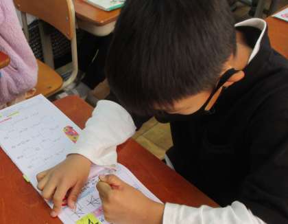 画数の多い字が増えてきました。書き順に気を付けてゆっくり丁寧に書くことを大切に,練習を頑張りましょう。