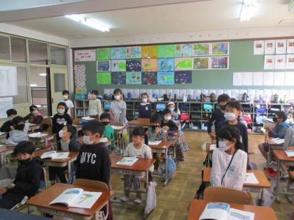学習発表会最初に,1年生がはじめのことばを発表します。「クラスの代表として言葉を言ってくれる人はいませんか?」と問いかけた所,たくさんの人が立候補してくれました。「やってみよう!」というやる気・気持ちを大切にしていきたいですね。