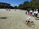 体育の走り幅跳びでは,目標の記録に向けて何度も跳んではフォームや歩幅の確認をしています。テストでは目標の記録を超えることができて喜んでいる様子が見られました!
