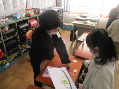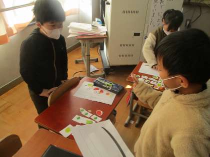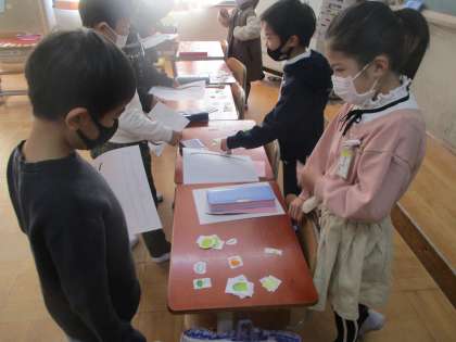 「藤城小の先生のためにサラダを作ろう」ということで,今日は,お店側とお客側に分かれて,やり取りをしました。