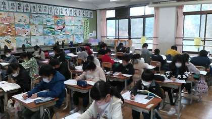 教科書を手元に,一人ひとり頑張ってテストに取り組んでいます。