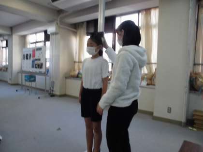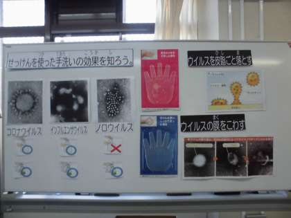 計測の前に,養護教諭の田靡先生に石鹸で手を洗うことの大切さについて教えていただきました。