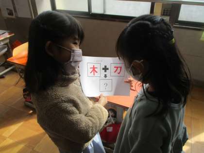 違う感じを組み合わせることでどんな漢字ができるのかを考えました。今日は自分で問題を作りました。2年生までに習った感じを使って楽しい問題を考え,クラスの子と問題を出し合いました。漢字のつくりを考える機会になりましたね。