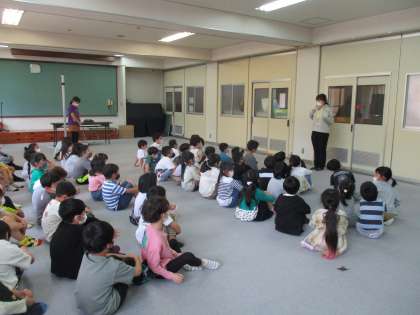 昨日は,1組と2組が多目的室に集まって学年集会をしました。