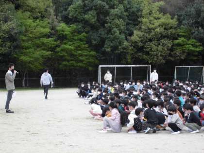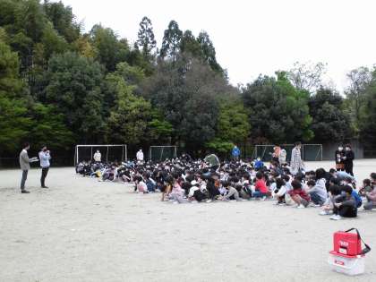 全校で避難訓練をしました。地震が起こった場合の避難の仕方や避難経路を確認し,運動場に避難をしました。訓練後は,今回の訓練についてのふりかえりをしました。