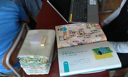 先日,5年生の教室に行くと…教科書やタブレットと合わせて,