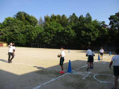 今日は初めての練習でした。パス練習や2対1などの練習をした後,練習試合をしました。初めてタグラグビーをする子もいるので,知っている子が教えながら少しずつルールを覚えていってほしいと思います。