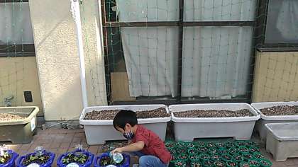 さらに「アサガオのお世話」も!毎朝のルーティンに加わっています。