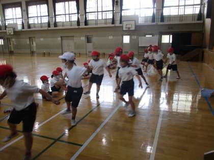 今日は,立ち幅跳び,反復横跳びをしました。反復横跳びは,数えるのが難しく,ペアの子が慎重に「1,2,3,4…」と数えていました。よく頑張りましたね✌