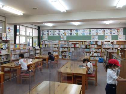 週に一回は,たけのこのみんなで図書室での読書タイムを設けています。