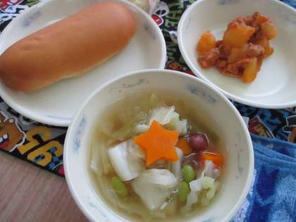 きょうの給食の「やさいのスープ煮」には,な,なんと…!
