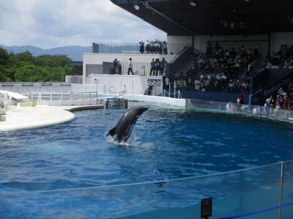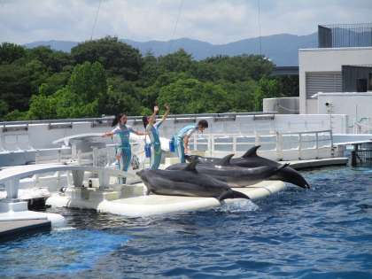 イルカショーは大盛り上がりでした。特に,音楽に乗せてイルカがジャンプをするときは,歓声がすごかったです。みんな感動していました。