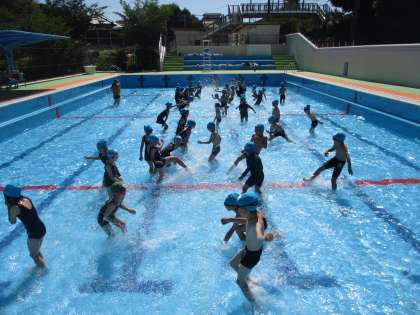 今日から体育で水あそびが始まりました。今日は低位水位だったのですが,子どもたちは楽しそうに泳いでいました。水の中で走ったり,浮いたりしながら楽しみました。来週からは,少し深くなります。楽しみですね✌