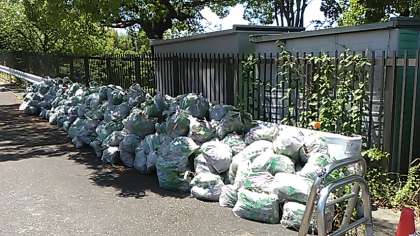 校内の至るところ,また児童館前の斜面や石垣の上,歩道わきまで…